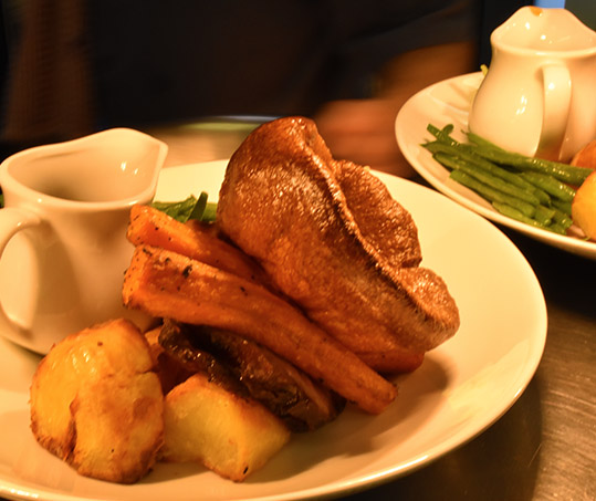 All served with, roast potatoes, seasonal vegetables, yorkshire pudding and gravy.